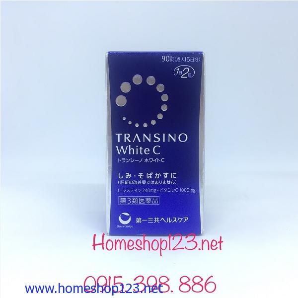Transino White C 90 viên là viên uống làm trắng da,trị nám tàn nhang được sản xuất theo công thức mới của nhà sản xuất Daiichisankyo Nhật bản, trị dứt điểm tàn nhang,nám da cho phụ nữ và công dụng làm trắng da tự nhiên từ bên trong