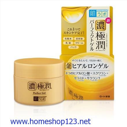 Kem dưỡng Hada Labo Gokujyun Perfect Gel 5 in 1 màu vàng là dòng kem dưỡng ẩm chuyên sâu giúp phục hồi làn da khô, mất nước với nồng độ cao các loại Hyaluronic Acid