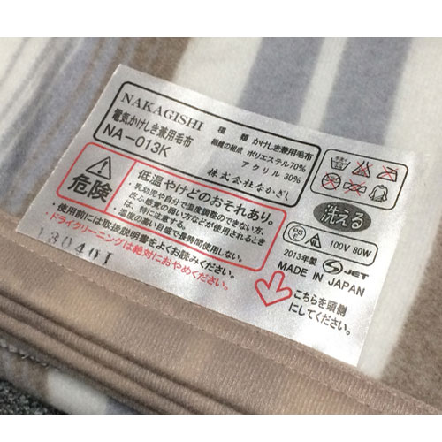 Thông số kỹ thuật chăn điện Nhật Bản Nakagishi NA-013K