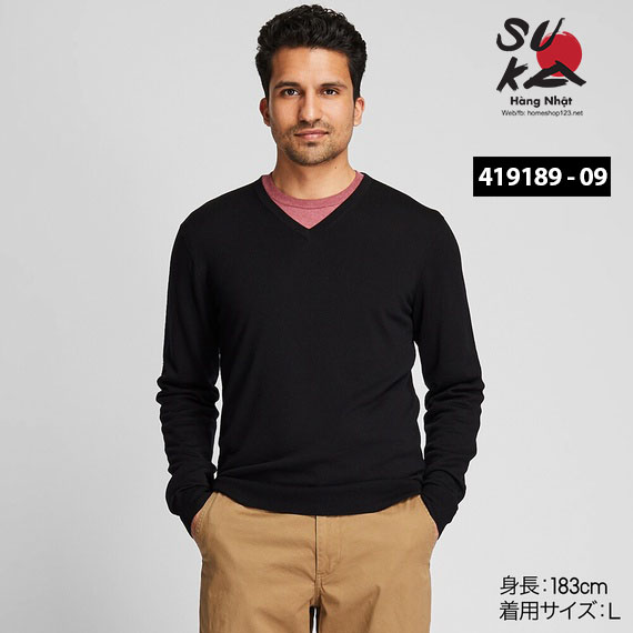 Áo Len Nam Cổ Tim Lông Cừu (Merino) - Chính hãng Uniqlo Nhật Bản. 100% len Merino (Lông Cừu) siêu mềm mịn