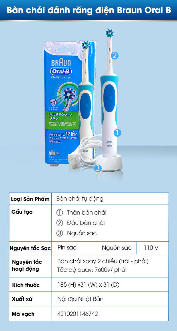 Bàn Chải Đánh Răng Điện Braun Oral-B Clean EX D12013A