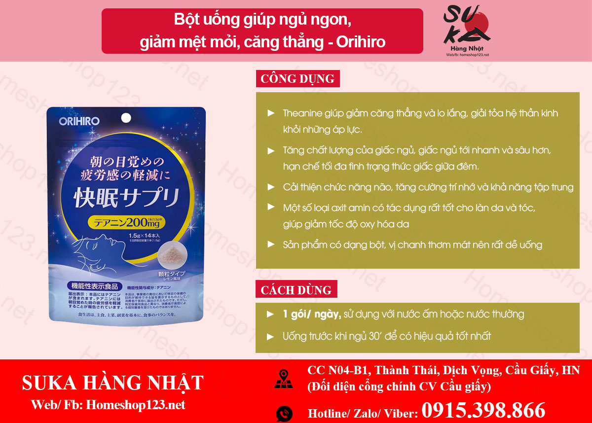 Bột uống giúp ngủ ngon, giảm mệt mỏi, căng thẳng - Orihiro