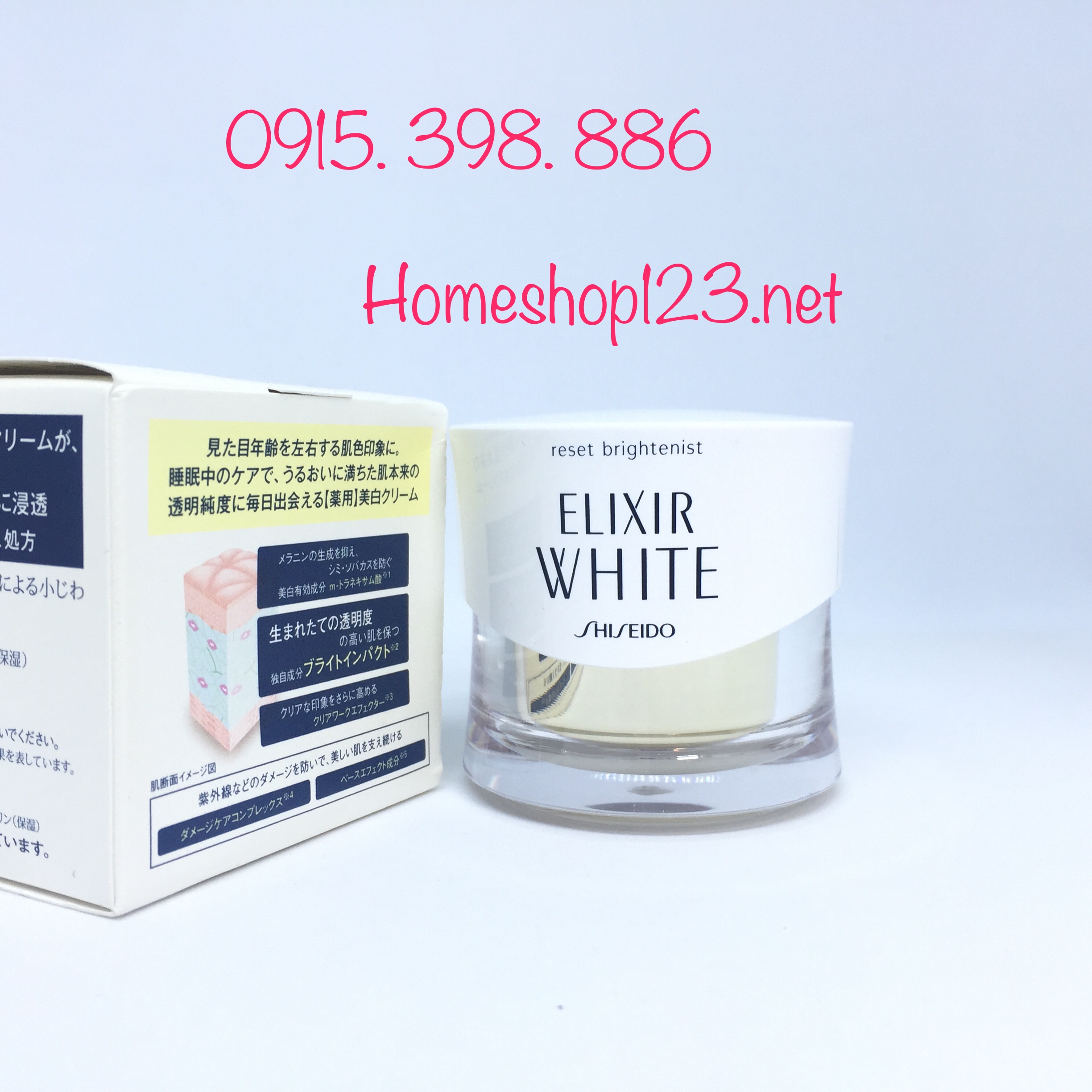Kem dưỡng đêm Shiseido Elixir White Reset Brightenist là loại kem có hiệu quả tăng cường tái tạo tế bào, cải thiện vi tuần hoàn và chức năng tự nhiên của da, làm sáng da từ bên trong. Kem dưỡng này được chiết xuất từ cây hồ nhi và hoa mẫu đơn ức chế sản xuất melanin dư thừa giúp da được giữ ẩm và mềm.,giữ ẩm tối ưu và hồi phục hòan hảo các dấu hiệu lão hóa da, giúp da dần cải thiện được mịn màng và căng đầy sức sống.
