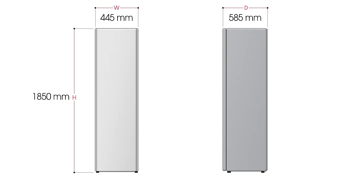 Kích thước (mm) (Rộng x Cao x Sâu): 445 x 1850 x 585