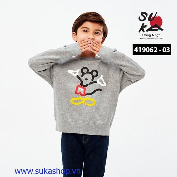 Áo thun cotton dài tay trẻ em (bé trai) Uniqlo: 100% chất liệu cotton, mềm mại phù hợp với trẻ em. Họa tiết mickey đáng yêu, rất thích hợp cho các bé trai