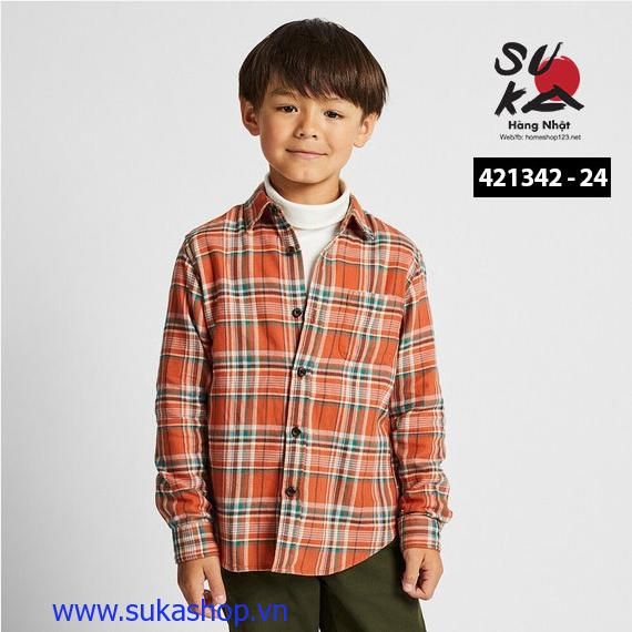 Áo Sơ mi cotton trẻ em nam Uniqlo: 100% chất liệu cotton, mềm mại phù hợp với trẻ em. Kiểu dáng rất sành điệu cho bé trai.