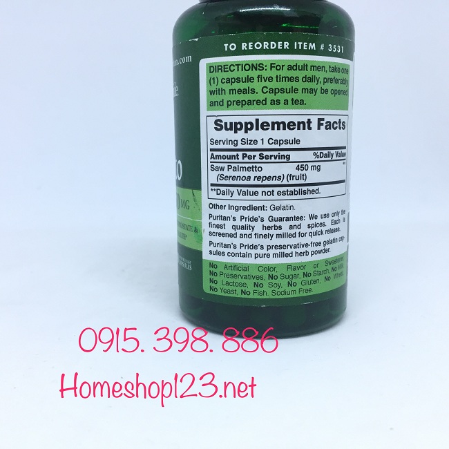 Puritan's Pride Saw Palmetto được sử dụng để tăng cường hoạt động của tuyến tiền liệt và tiết niệu của nam giới.