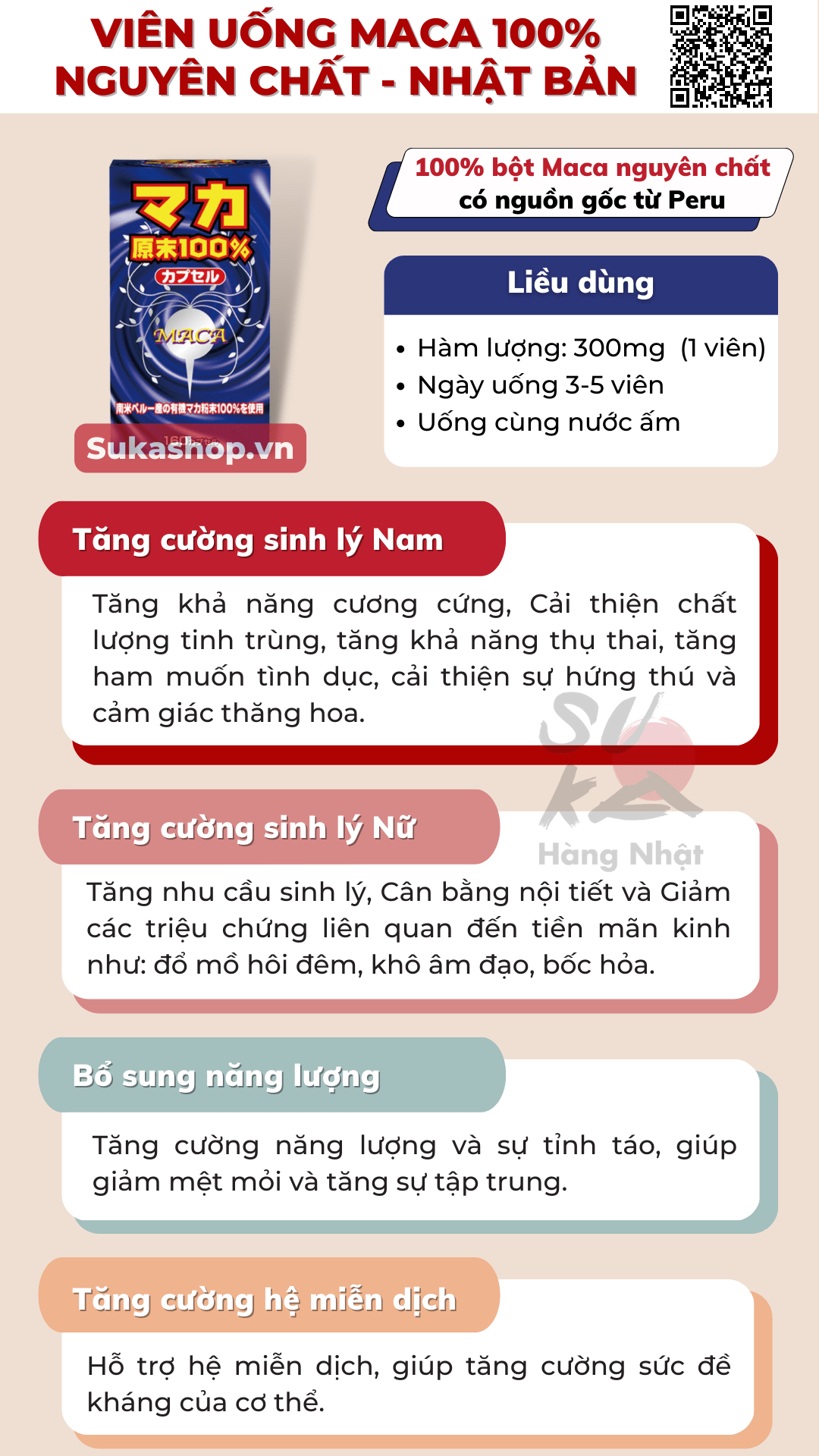 - Thành phần: Maca nguyên chất 100%